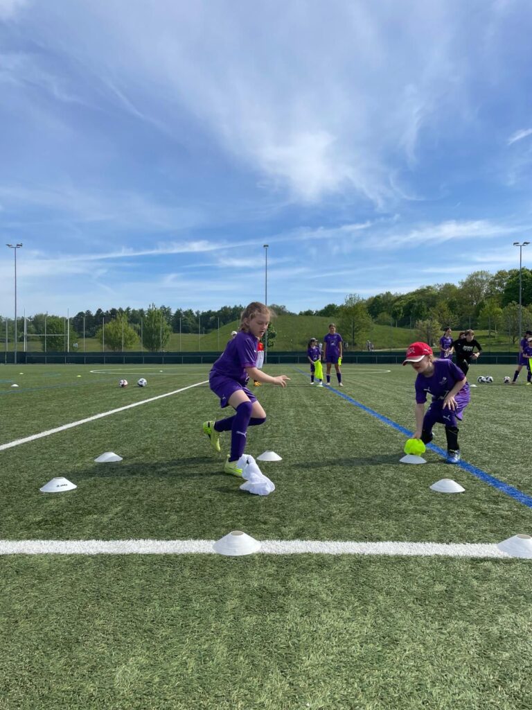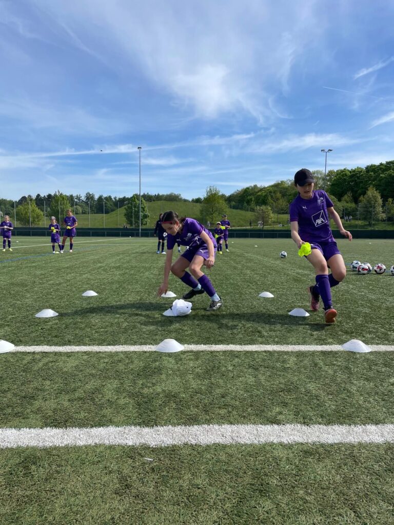 Im fussballerischen Teil lag der Schwerpunkt diesmal auf der Ballan- und -mitnahme. Nachdem die Mädchen in den letzten Einheiten bereits wichtige Grundlagen im Passspiel erarbeitet hatten, ging es nun darum, den Ball sauber zu kontrollieren und direkt in die nächste Aktion überzugehen. Mit viel Einsatz und Konzentration setzten die Spielerinnen die Übungen um und machten dabei tolle Fortschritte. Es war schön zu sehen, wie sicherer die Ballkontakte wurden und wie mutig die Mädchen die Aufgaben angingen.